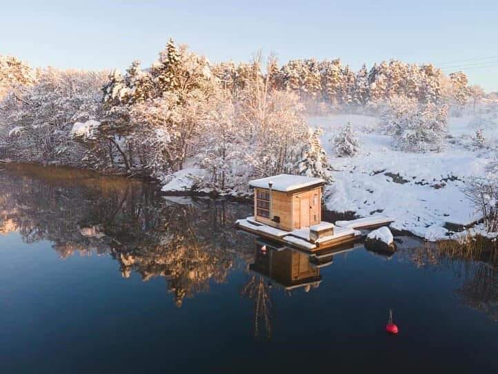 The sauna is located in Lake Ärlången, just outside of Grebo in Östergötland.